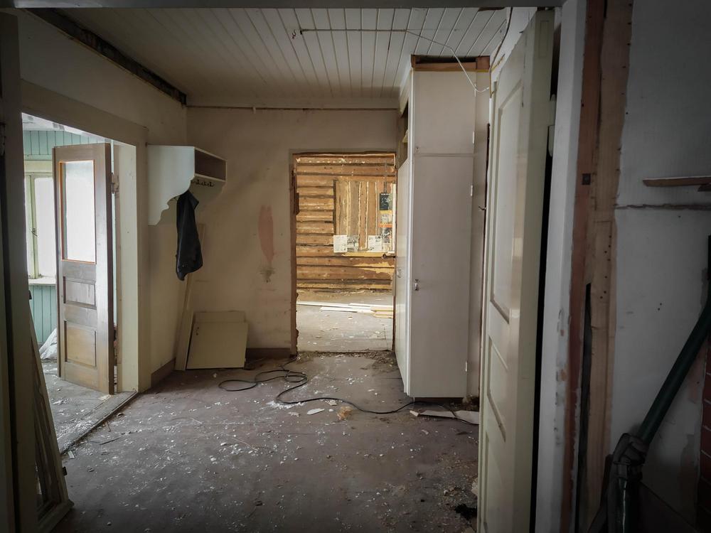 Lauantaina 30. päivä talkoiltiin pienellä porukalla pilottitalo Pentinmäen talon sisävuorauksia ja eristeitä pois.
