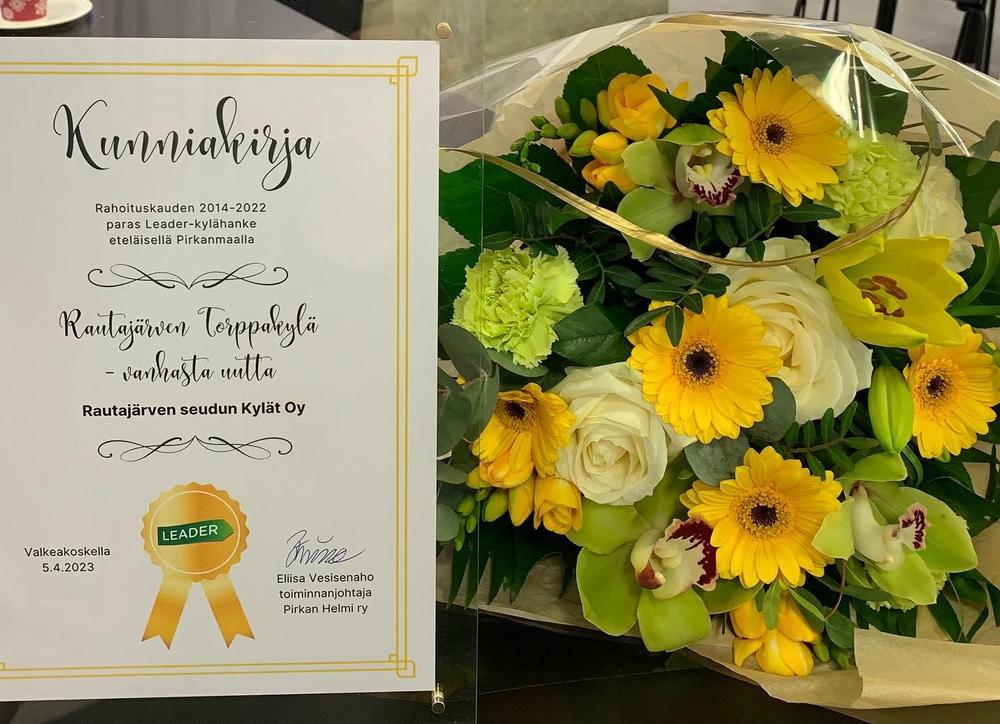 Rautajärven seudun Kylät Oy sai huomionosoituksen Pirkan Helmen vuosikokouksessa, jossa Rautajärven Torppakylä hanke palkittiin rahoituskauden 2014-2022 parhaana Leader -kylähankkeena eteläisellä Pirkanmaalla!