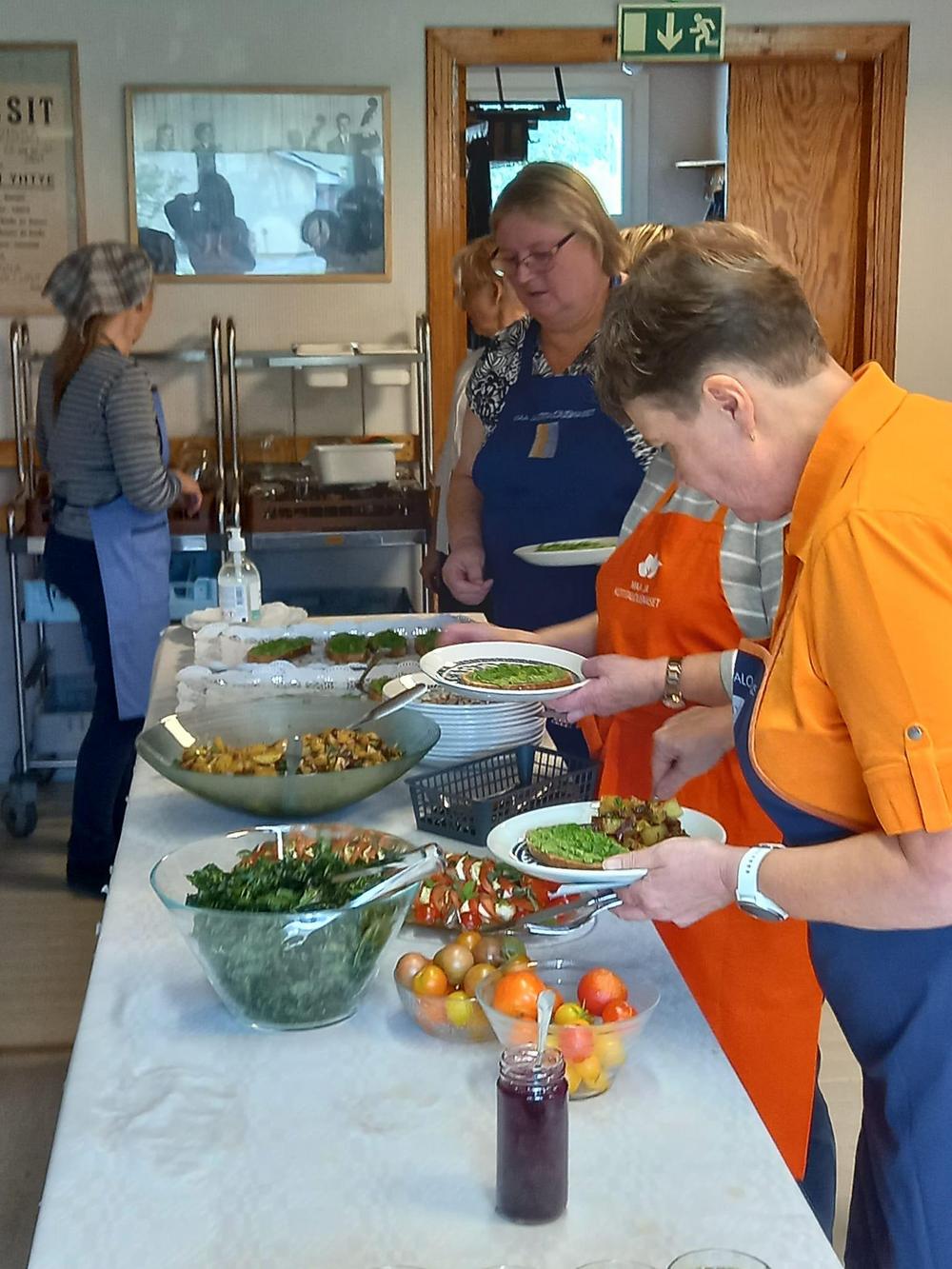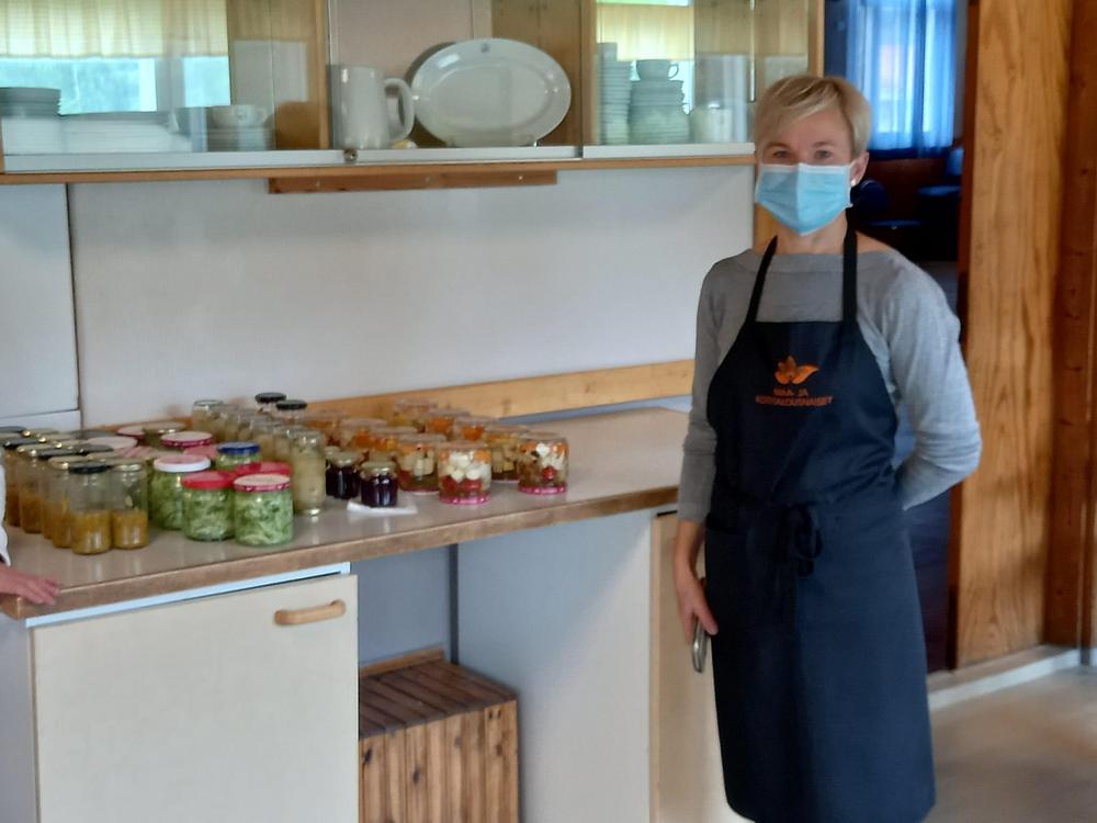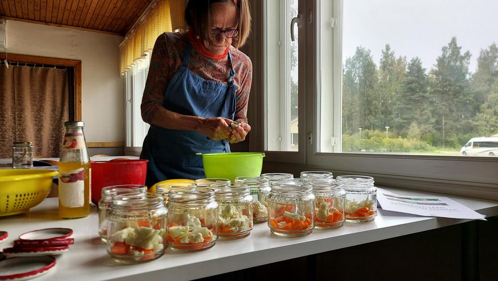 Tiistaina Rautahovilla tuoksui ilmassa syyskesän herkut. Maatalousnaisten torppakylähankkeessa työskentelevän Kirsin avittamana järjestämä säilöntäkurssi saatiin koronatilanteesta huolimatta järjestettyä tänä syksynä. Kylläpä tuntui hyvältä kokoontua yhteen, tehdä ja oppia taas yhdessä. Tähän Rautahovi on 65 vuotta sitten rakennettu talkoilla: paikaksi jonne kokoonnutaan oppimaan, viihtymään ja nauttimaan meidän maan antimia. Miksei joskus metsien ja järvenkin. Jos torppakylän pelloilla erehtyy kasvimaan itselleen laittamaan, saattaa hyvinkin hyvät reseptit olla tarpeen ettei kasvimaalta notkuva ruoka mene hukkaan. Täällä päin asuessa kasvimaan säilöntäkelpoisia tuotteita saattaa tulla hankkineeksi ylen määrin Luopioisten torilta Pellikalta tai Aholalalta tai lähikylistä ohi ajaessa Laitikkalan makukylästä Suttiselta tai Vesijaon tuoretorilta. Kurssin ohjelmasta vastaavan Satun luvalla muutama oikein hyväksi havaittu resepti siihen hätään: