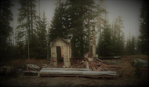 Luopioisten pitäjässä on näinä päivinä taloja enemmänkin liikenteessä. Niemelän pieni talo purettiin sutjakkaasti kuukaudessa kahden talkoopäivän ja kahden ammattimiehen työpäivän aikana. Noin neljänkymmenen neliön hirsikehikosta tulee varahirsiä jo suunniteltuihin taloihin. Harmi, sillä Niemelä on ollut kaunis parhaimmillaan. Luonnonkivistä louhittu korkea perusta on melkein pöyhkeä, mutta tuo talolle korkeutta ja upean ryhdin. Näin Niemelä jatkaa tarinaa eikä mene haaskuulle.
